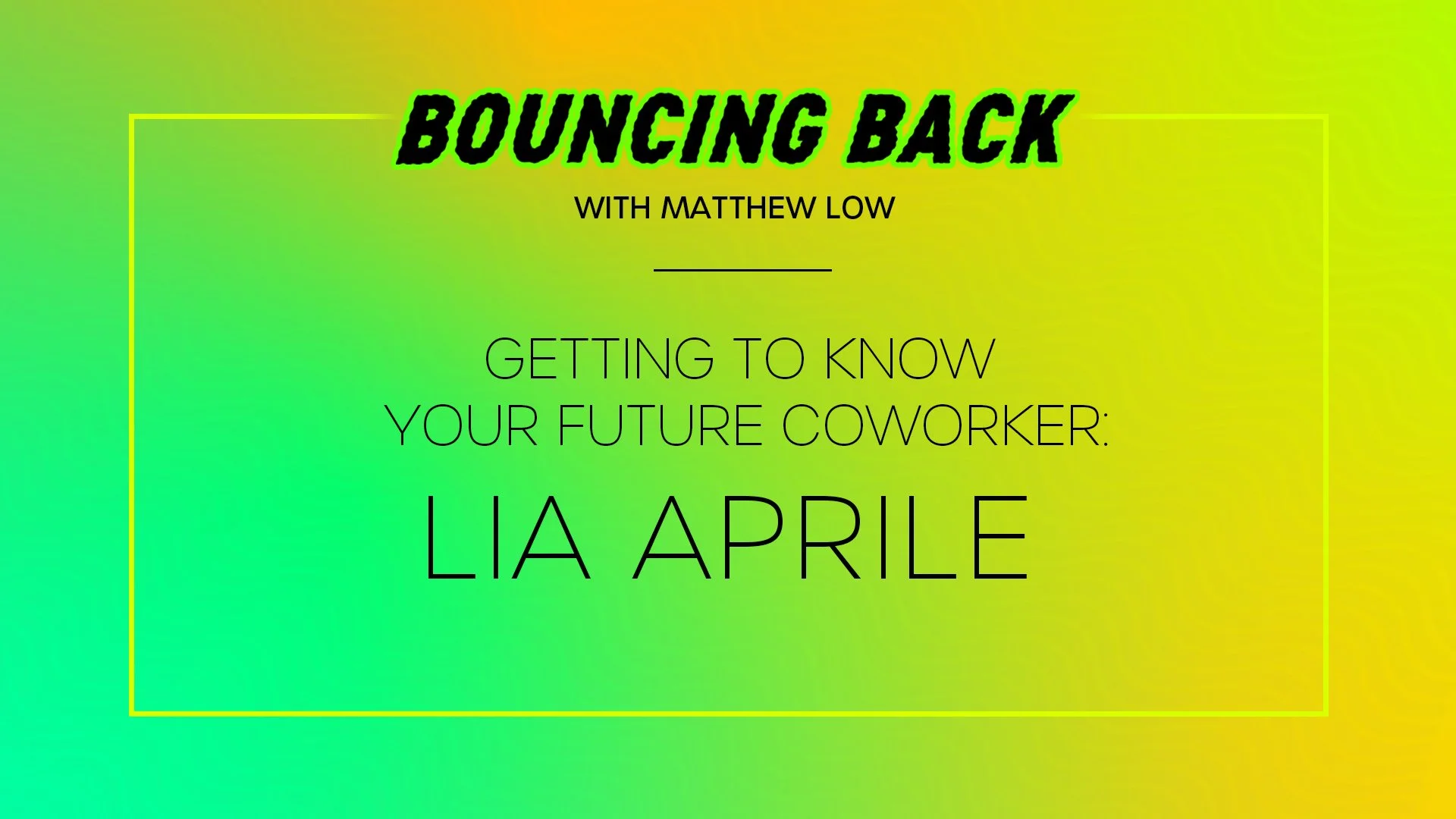 We’ve partnered with Associate Creative Director Matthew Low to promote ‘Bouncing Back’ — a content series where Matthew interviews talent looking to get back on their feet during COVID about their passions and what it’s like to work with them. You might say it’s like interviewing your future co-worker.